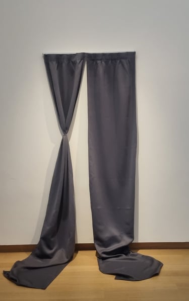 The veil of my eyes retraces an experience of a psychiatric hospital. The project focuses on the moment of coming out of the institution and the feeling of being cut out of society that follows. The installation explores the notion of being inside looking outside, and rehabilitating the body and the way of living to the outside. Curtains reference the frontier between these two spaces in an attempt to activate memories of crossing it.